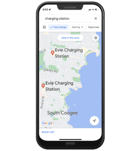To locate a charging station nearby, simply search for ‘charging stations’. From here you can even filter to fast chargers and your required plug type.