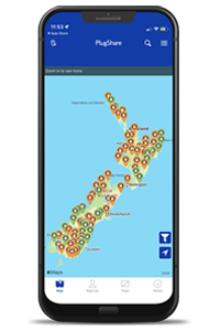 PlugShare offers an interactive map showing public charging stations around New Zealand.